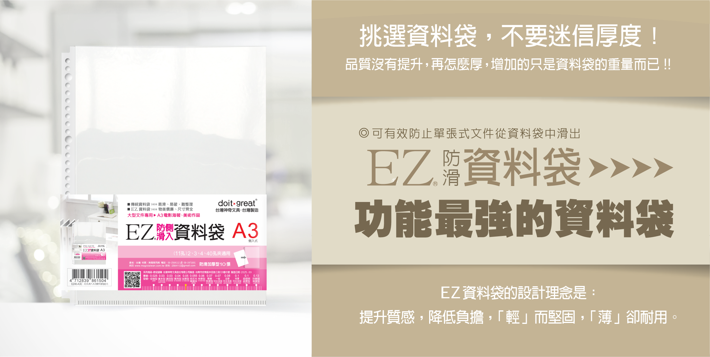 EZ防眩光加厚型 防滑資料袋 30孔 (50/100張)